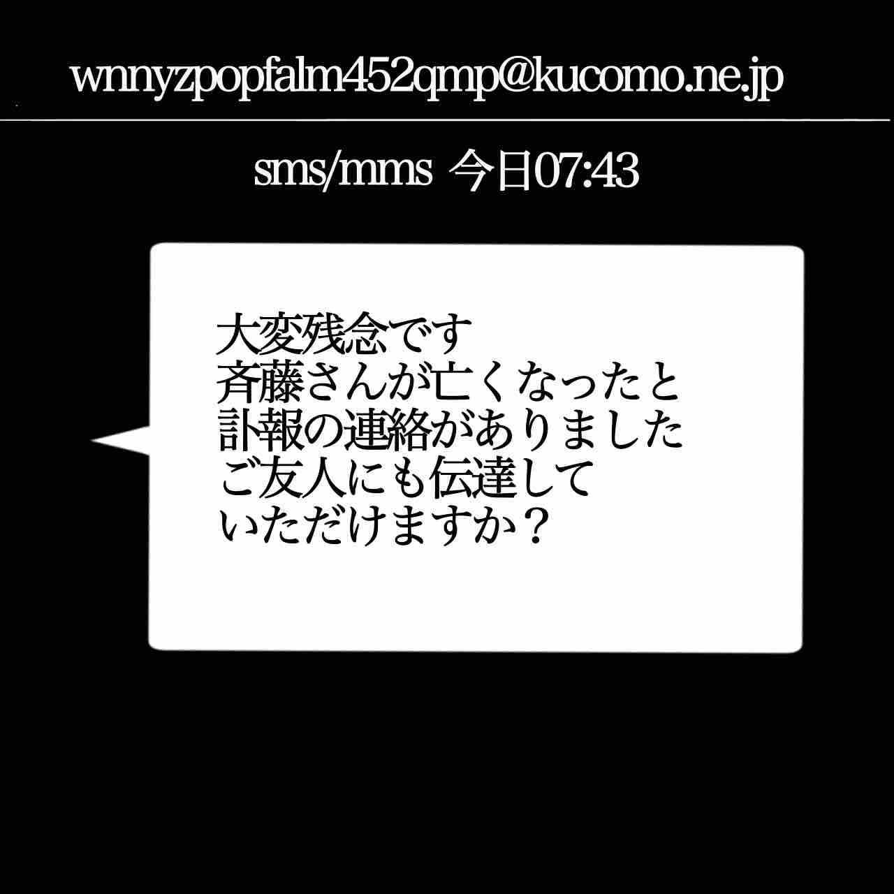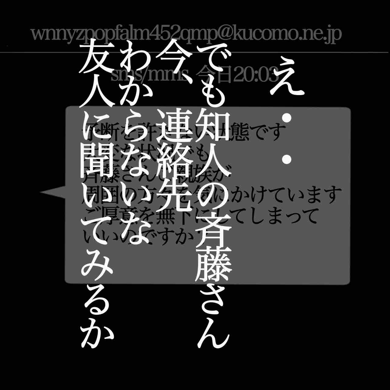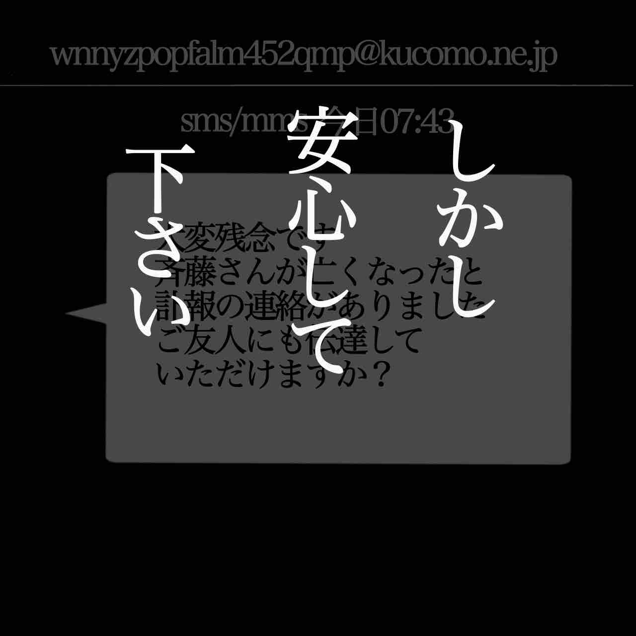 【結末】斉藤さん3 2024年08月07日 はじめから↓ 返信したら↓ イケメンリバイバル: 本当にあった怖い話 てにくまちゃんの怖い体験談てにくまちゃん2024-06-26家族: 本当にあったゾッとする話 てにくまちゃんの怖い体験談てにくまちゃん2024-01-03蛇: 本当にあったこわい体験談 てにくまちゃんの怖い体験談てにくまちゃん2023-12-21 「短編怖い体験談」カテゴリの最新記事 タグ :#怖い話#いもあば#意味怖#てにくまちゃん < 前の記事次の記事 >