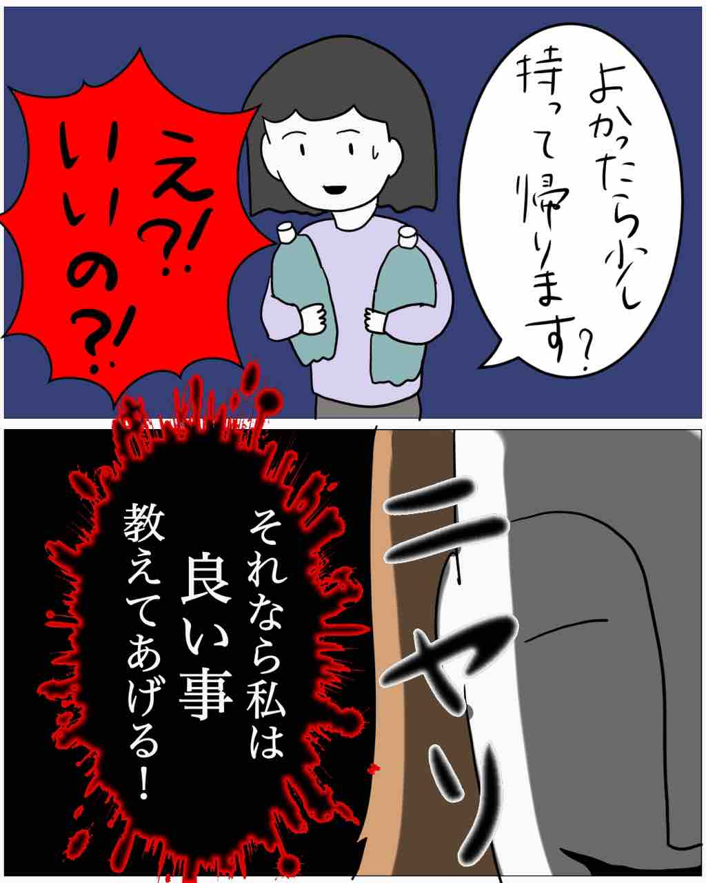 【新作】トモダチ5 2023年05月12日 ↓トモダチ4 ↓トモダチ全話一覧 あの子がなにか、ふりかぶってる!!!顔が怖い‥つづきます!↓つづきでたよ みなさん、たけのこが竹になる瞬間を見た事がありますかいのう。この前、ロンギングたけのこをみつけたんですわ。これが今は‥一瞬でのびてましたわ。下の方はも ... ↓トモダチ4 ↓トモダチ全話一覧 あの子がなにか、ふりかぶってる!!!顔が怖い‥つづきます!↓つづきでたよ みなさん、たけのこが竹になる瞬間を見た事がありますかいのう。この前、ロンギングたけのこをみつけたんですわ。これが今は‥一瞬でのびてましたわ。下の方はもう皮がはがれて竹に。なんか、見た事なかったんで写真とってたらおじいちゃんに話しかけられた👴笑笑立派な竹になるまで見届けます🎋↓山姥の護21話! ↓もしかしてお隣さんは事故物件!5 ↓悪夢おまけ4 ↓家族2 ↓トモダチ4 タグ :#悪夢#怖い話#怖い#漫画#インスタ漫画#漫画が読めるハッシュタグ#コミックエッセイ 続きを読む